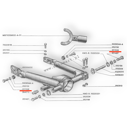 Śruba mocowania amortyzatora DOLNA K750 Ural Dniepr MT wahacz rama szruba